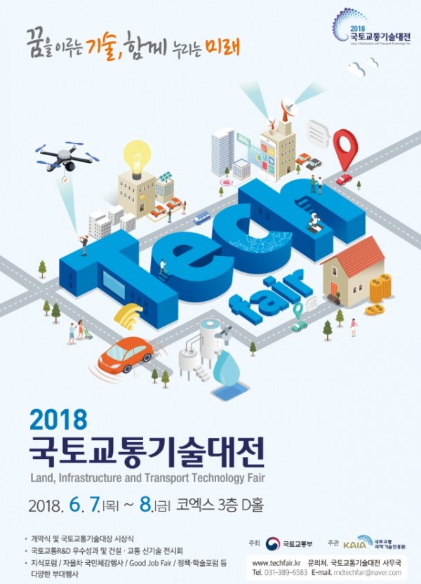 '꿈을 이루는 기술, 함께 누리는 미래'를 주제로 하는 '2018 국토교통기술대전'이 코엑스에서 개최됩니다.